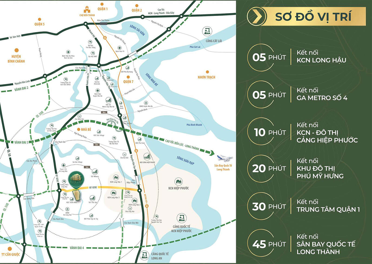 Bên cạnh đó dự án còn kết nối trực tiếp với trục Lê Văn Lương nối dài & Nguyễn Văn Tạo di chuyển thuận tiện về trung tâm Phú Mỹ Hưng nhanh chóng. Kết nối thuận tiện nhanh về Sài Gòn giúp cho nhà đầu tư thanh khoản rất tốt trong thời gian tới.