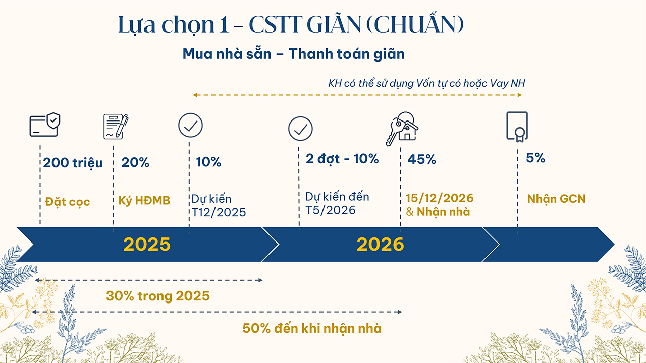 | Bàn giao: | Hoàn thiện mặt ngoài và giao thô bên trong. |